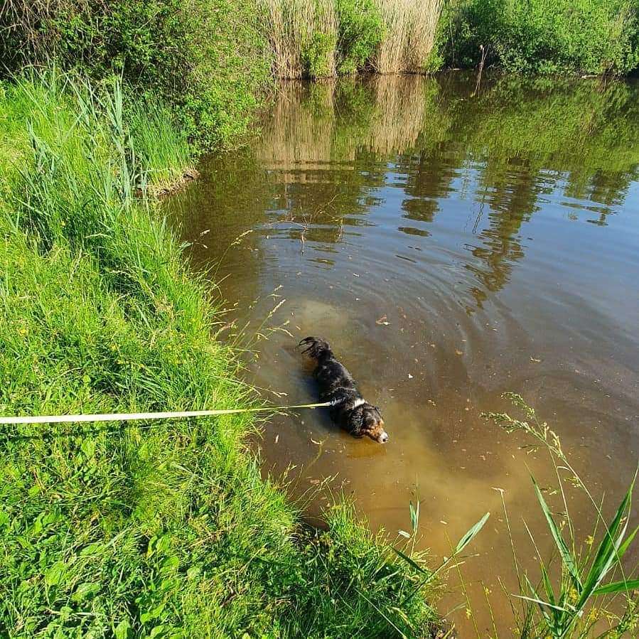 Da fühlt unser Fussel sich mega wohl. Ein kleiner See ist vorhanden und in der Nähe ist das Forellenparadies. Der größte Teil der Strecke liegt im Schatten