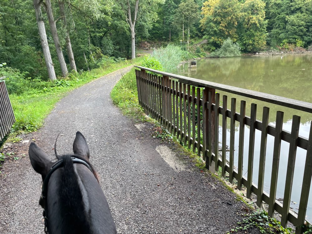 Geschotterte Wanderwege vom Wanderparkplatz im Wald zum See. See liegt im Wald, flacher Einstieg für Hunde nur auf der Südseite. Sitzmöglichkeiten am See.