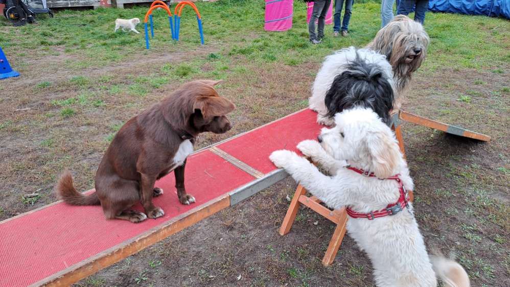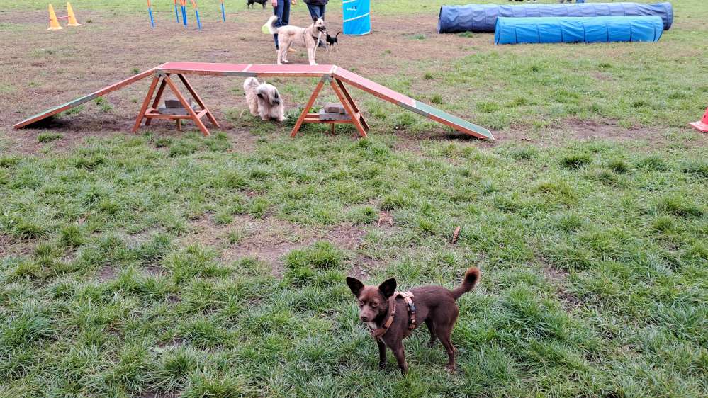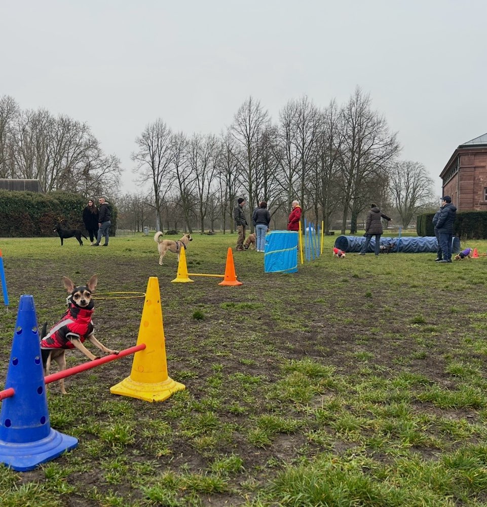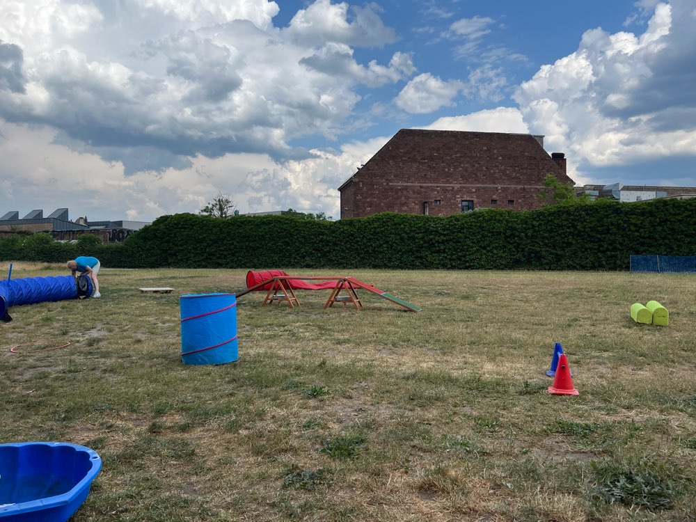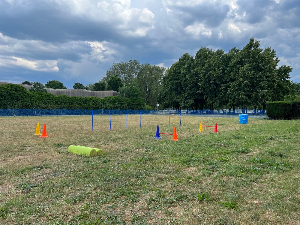 Seit 2017 gibt es diese Auslauffläche. In Karlsruhe werden die Flächen ausgeschildert. Seit 3 Jahren findet dort regelmäßig der HUNDETREFF statt. Jeden Sonntag und Donnerstag der Feierabend HUNDETREFF ab 16-18h werden privat Geräte für Agility aufgestellt und eine Gruppe Hundebesitzer geniessen das treiben ihrer Lieblinge.