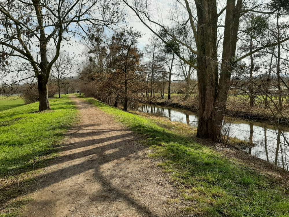 Schöner Weg an der Pfinz entlang mit großer Wiese zum toben.