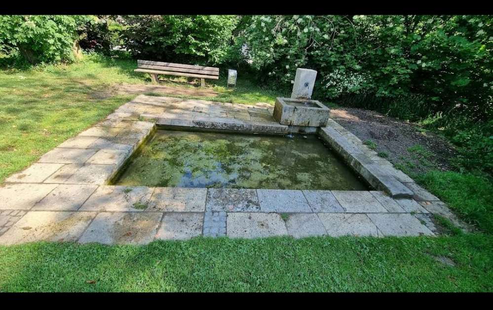 Hundewiese ohne Grüne Poller, mit kleinem Brunnen zum Planschen in ruhigem Wohngebiet