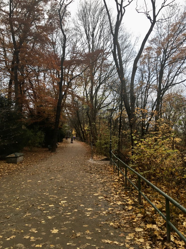 Eine Parkanlage mit Wegen auf und im Abhang, abseits denen geschnüffelt werden kann.