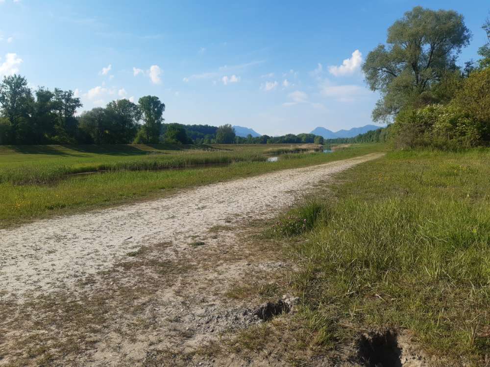 Auf der Hofauseite (Südostufer des Inn) dürfen Hunde ab 50cm nur angeleint auf den Damm.