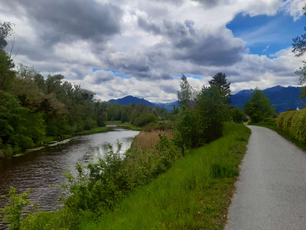 Schönes weitläufige Gelände mit gut angelegten Wegen und Hundestationen. Theoretisch kann man auf und parallel zum Inndamm bis Rosenheim oder Kufstein laufen.