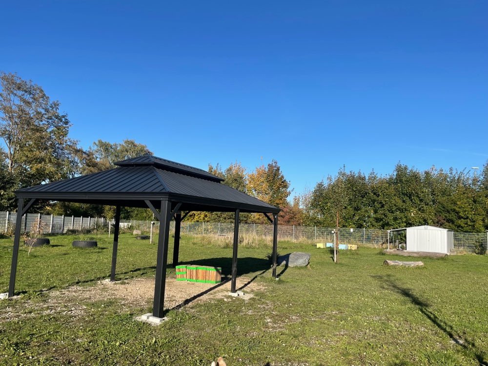 Eine eingezäunte Hundewiese die man Stundenweise mieten kann, mit verschiedenen Hindernisse. Echt toll