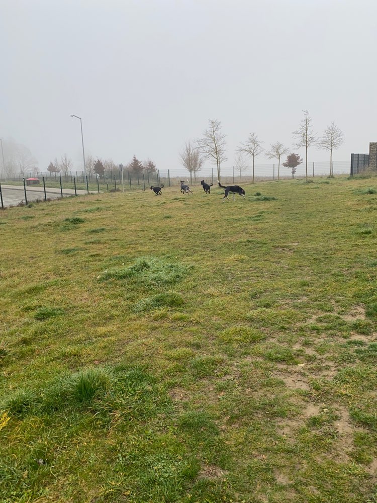 Unser Hund, mittelgroß mit Stockmaß ca. 40 cm, ist unter dem geschlossenen Tor durchgekrochen und auf den Parkplatz (Gott sei Dank) zum Auto gelaufen. Wir haben erst im Nachhinein bemerkt, dass das Tor viel zu hoch angesetzt und darunter eine gewaltige Kuhle ist. Wir hatten den Platz vor dem Ableinen inspiziert und das nicht beachtet. Was nützt die gründliche Umzäunung, wenn ein eher größerer Hund unter dem Tor durchpasst, wenn er sich durch laute Geräusche plötzlich in Panik gerät.