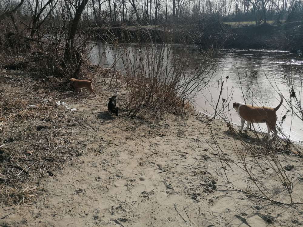 Schönes sandiges Gelände gut zum Spielen für die Hunde und super Bademöglichkeit mit großem Strand und Spielplatz.