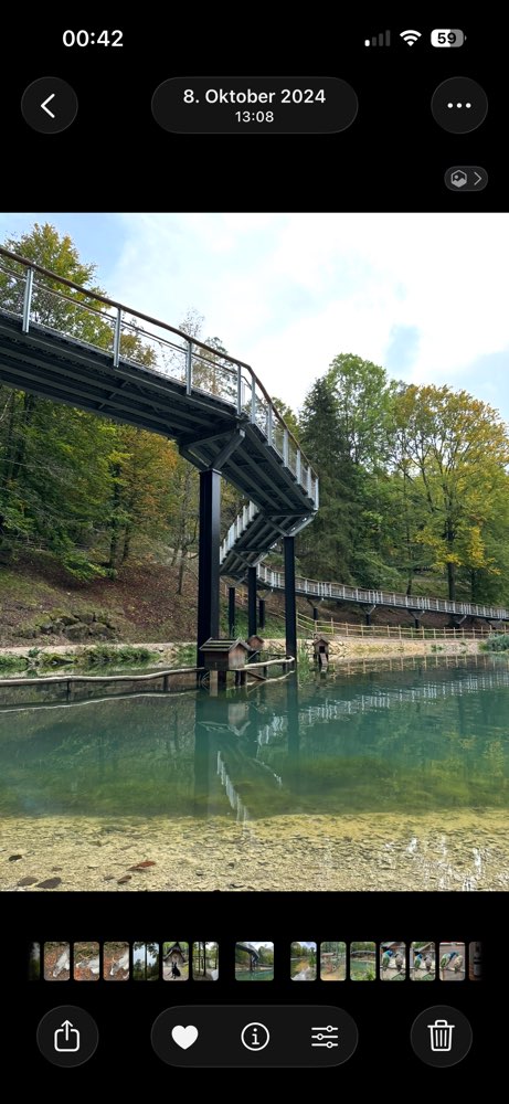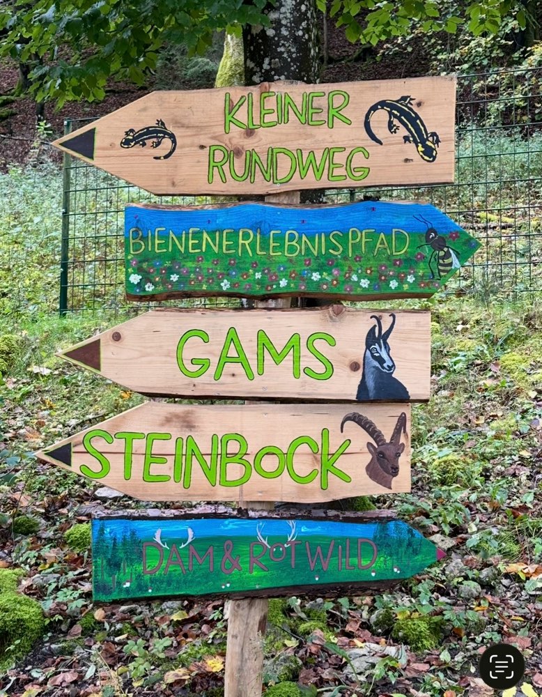 Schönes, weitläufiges Gelände, schön angelegt, viel zu entdecken und interessantes zu den Tieren auf großen bunten Tafeln erklärt. Der Weg zu den Wölfen ist sehr steil. Hunde müssen an der Leine sein, man bekommt die Regeln an der Kasse auf einem Zettel. Hunde kosten Eintritt.