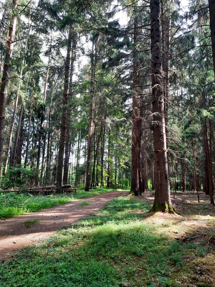 Fast die ganze Strecke führt durch den schönen Wald von Neuendettelsau. Es sind einige Sitzmöglichkeiten geboten, um sich eine Pause zu gönnen und auf einem kleinen Teil der Strecke gibt es am Rand ,,Fitnessgeräte" für die besonders sportlichen unter euch.