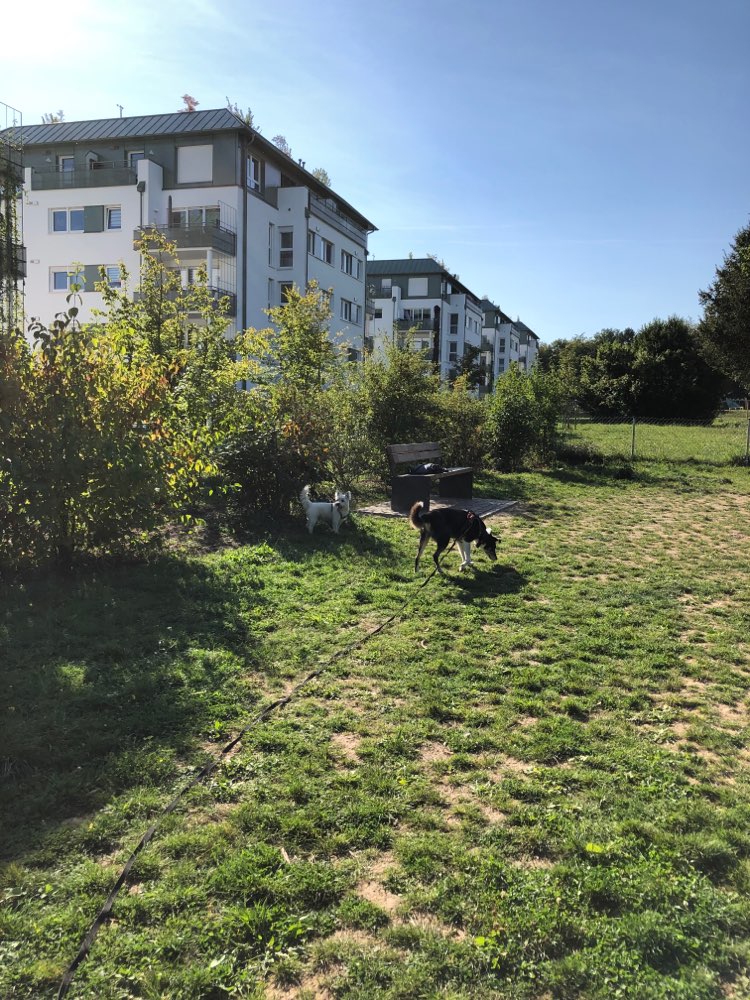 An sich liebt unsere Ivy diese Hundewiese. Leider sind die Bepflanzungen etwas schlecht gewählt (Dornen...). Ansonsten hat sie dort immer viel Spaß 👍🏼
