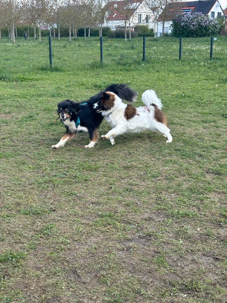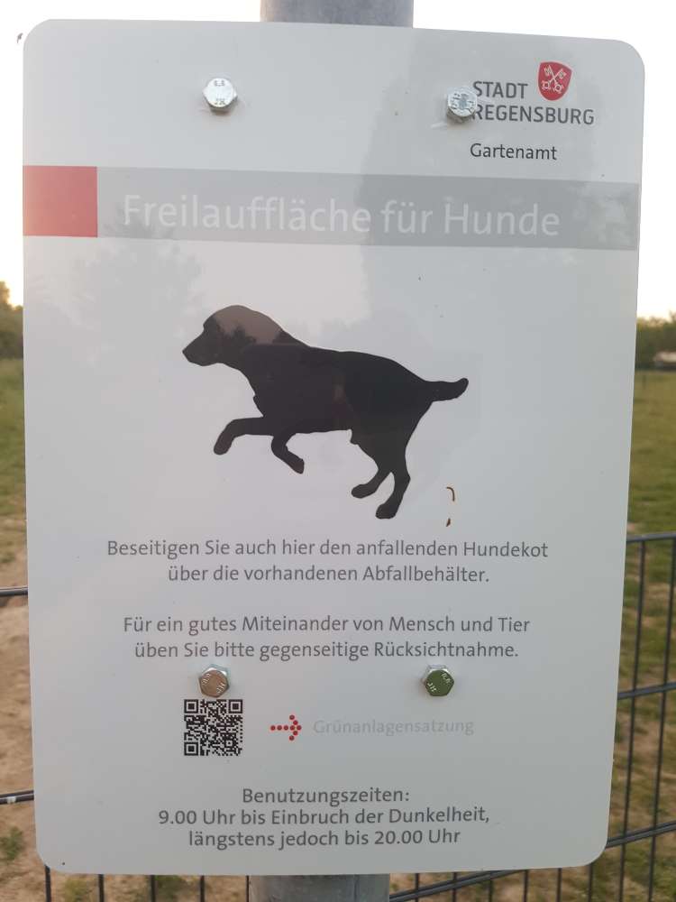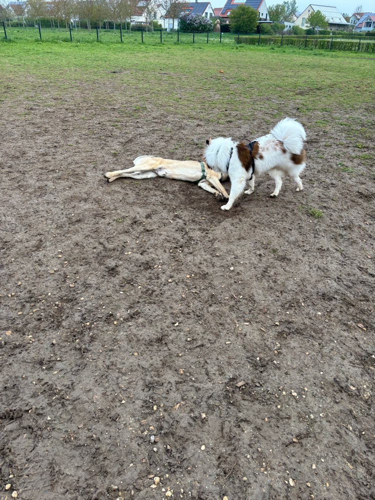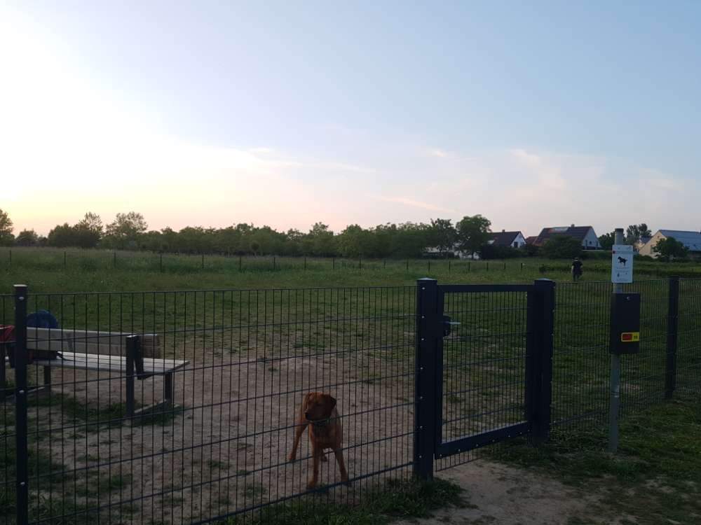 Mara liebt es hier mit anderen Hunden zu toben. Beste Zeit bei heißem Wetter ist ab 19 Uhr, da dann auch mal Schatten auf die Wiese fällt.