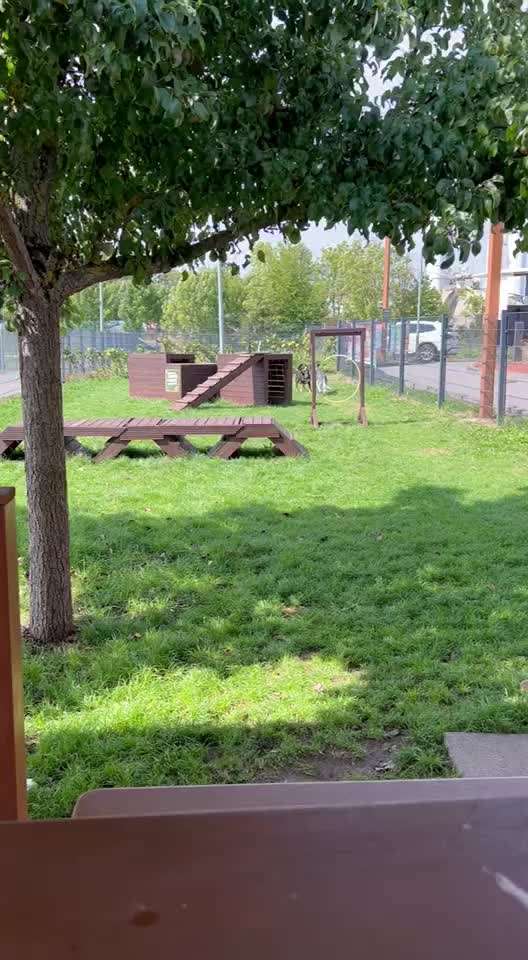 Bei McDonalds in Pentling gibt es eine kleine, aber feine Hundewiese. Ein Spender für Hundekotbeutel, Mülleimer und Geräte zum Toben und Üben.
