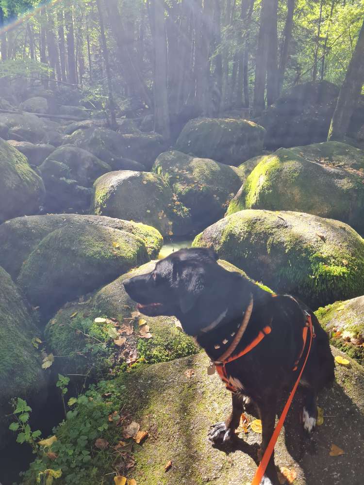 Rundwanderweg im Naturschutzgebiet Hölle bei Rettenbach. Sehr felsig, teils unwegsam, nicht für Kinderwägen geeignet. Da es ein Naturschutzgebiet ist, besteht Leinenpflicht