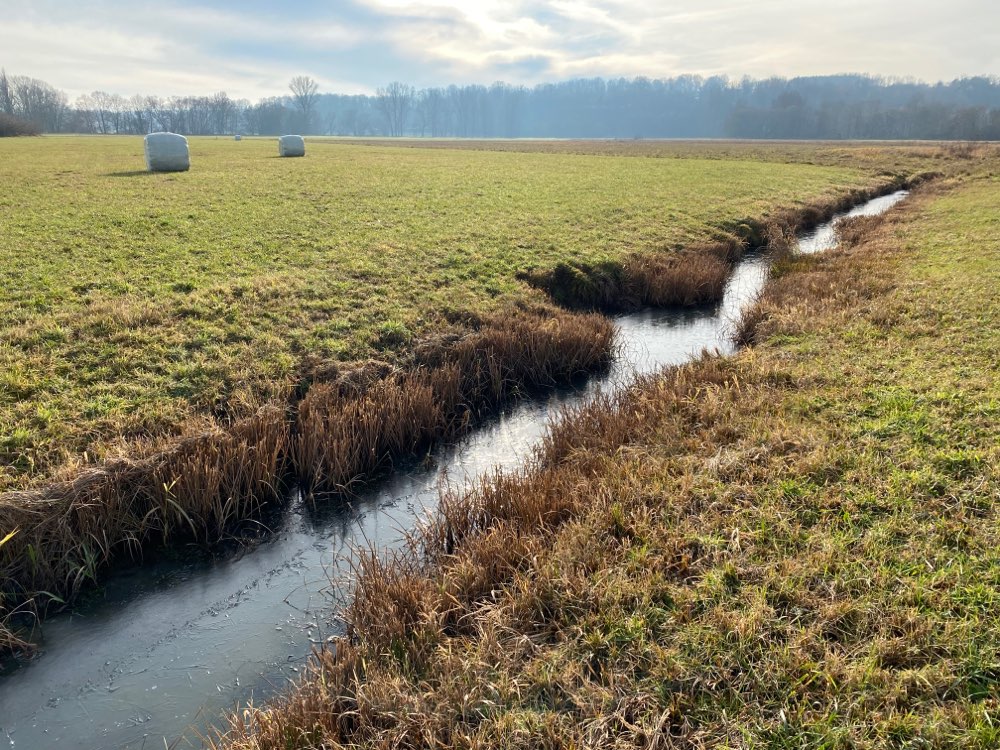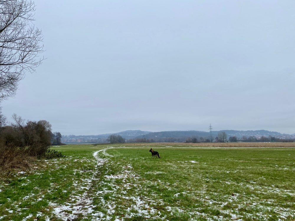 Ebene, weitläufige Wiesenflächen mit Flussdurchlauf. Im Frühjahr/Sommer Leinenpflicht wegen Wiesenbrütern - im Herbst/Winter Freilauf erlaubt.