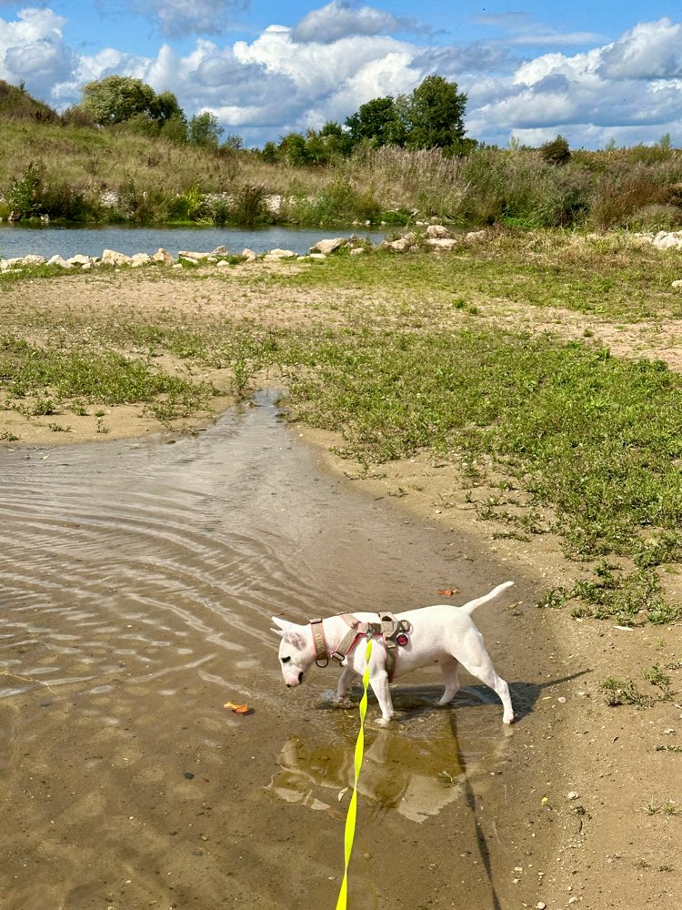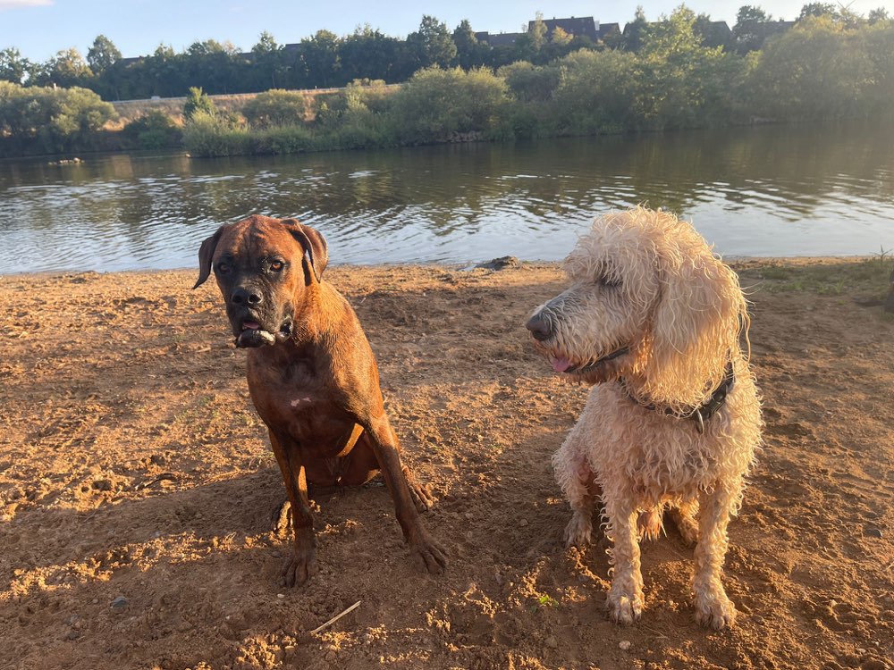Fanden es sehr schön dort. Wasser nicht zu tief und viele nette Hunde mit ihren Dosenöffnern 😃😃