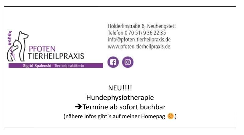 Angebote von Pfoten Tierheilpraxis
