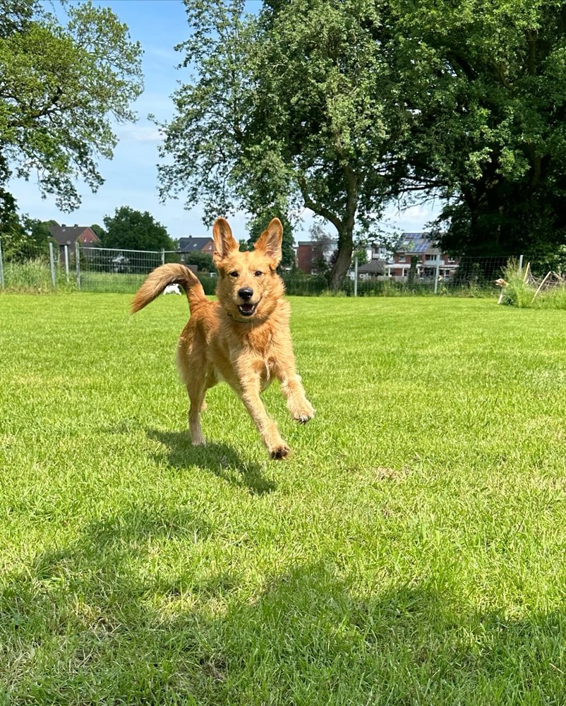 Zusätzlich zu unseren Touren steht den Hunden ein ganz besonderer Rückzugsort zur Verfügung: meine ca. 2.500 qm große, komplett eingezäunte Wiese.