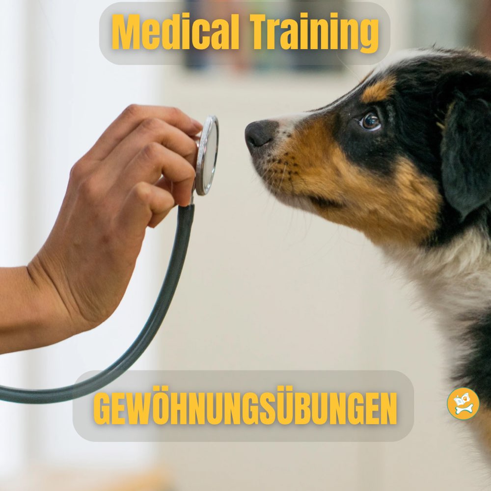 --Medical Training: Das Medical Training bereitet Hunde auf den stressfreien Umgang mit tierärztlichen Untersuchungen und Pflegemaßnahmen vor. In diesem Kurs wird den Hunden Schritt für Schritt beigebracht, sich ruhig und kooperativ bei Untersuchungen, Impfungen oder der Pflege zu verhalten. Dies reduziert den Stress für den Hund und erleichtert Tierarztbesuche sowie die häusliche Pflege erheblich. Der Kurs findet als Live-Online-Training statt.