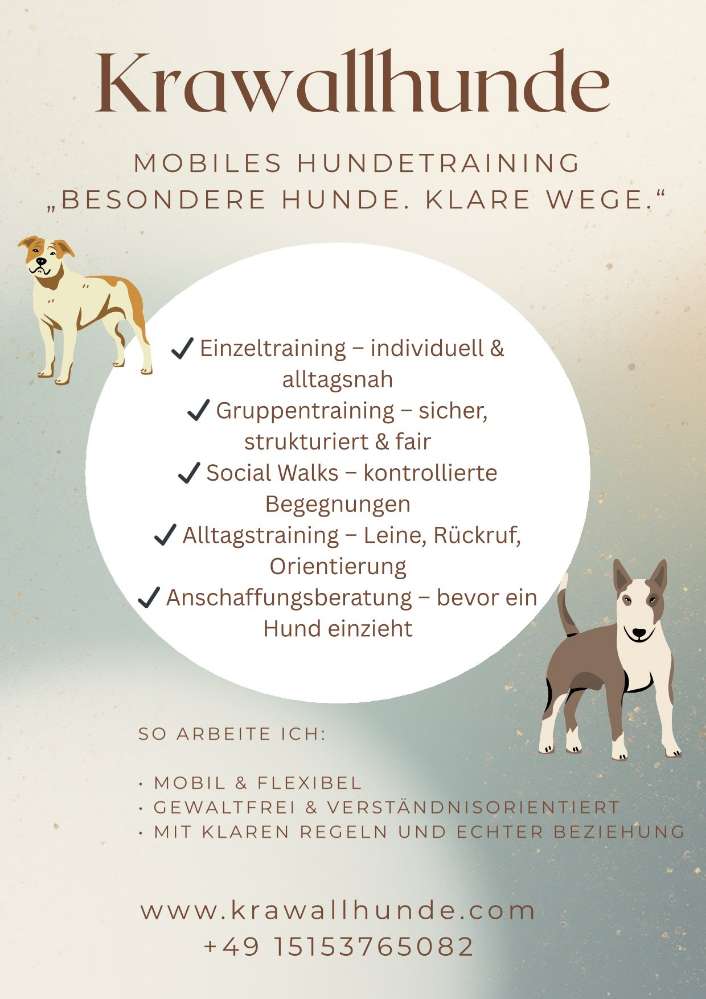 Mein Hauptanliegen gilt der Unterstützung und Beratung von Menschen im Umgang mit verhaltensauffälligen Hunden. Halter/Innen solcher Hunde sind oftmals einer enormen Belastung ausgesetzt und empfinden einen starken Leidensdruck. Es ist nicht nur allein der Hund, der diese Menschen an ihre Grenzen bringt, es ist – so hart das klingen mag – auch das Urteil der Gesellschaft in Hinblick darauf, wie ein Hund zu sein hat. Mein Ziel ist, die Halter zu stärken, um selbstbewusst zu ihrem Hund stehen zu können, denn nur dann ist es ihnen möglich die Führung zu übernehmen, ihren Hund zu lenken und angemessene, faire Grenzen zu setzen. Besonders wichtig ist mir in diesem Kontext, dass Halter/Innen lernen die Signale und die Körpersprache ihrer Hunde wahrzunehmen, zu verstehen und reagieren zu können. Durch individuelles, auf Hund und Halter abgestimmtes Training ist es durchaus möglich auch mit „auffälligen Hunden“ eine Balance zu schaffen, so das – ein harmonisches Zusammenleben gestaltet werden kann.
