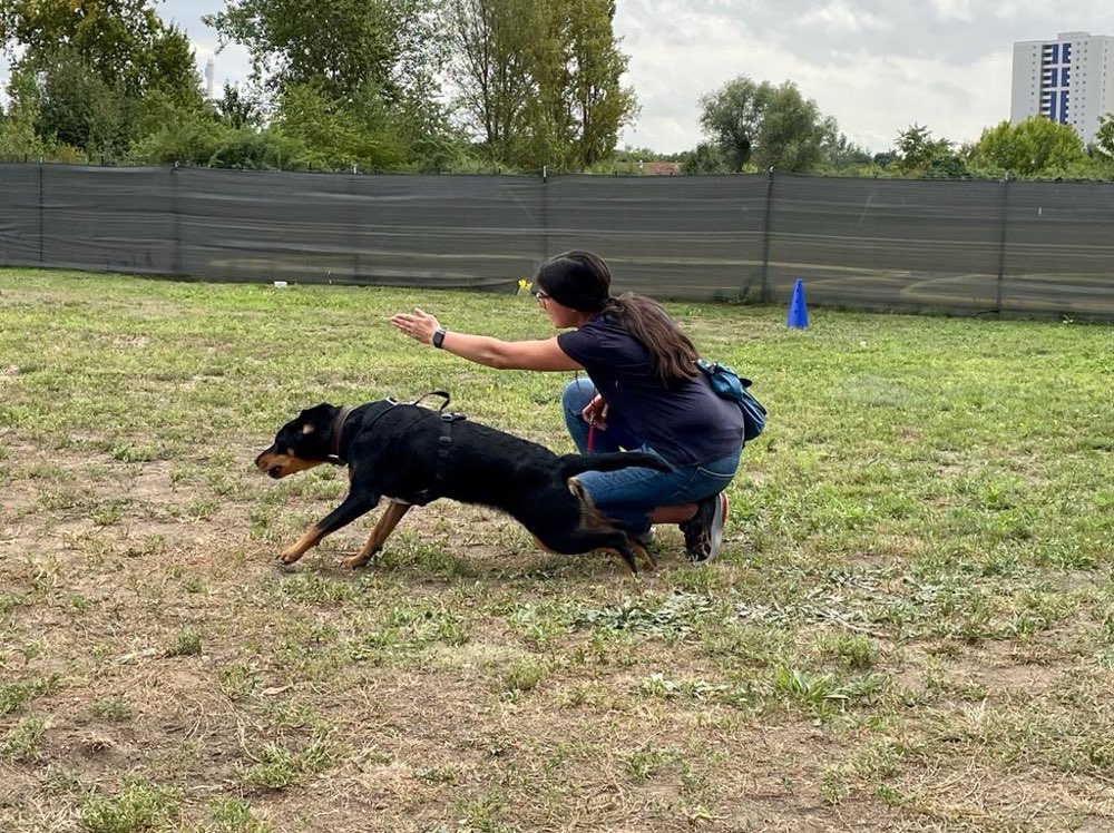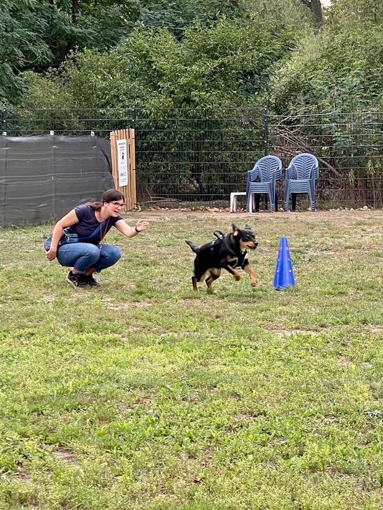 Voraussetzungen: *Mindestalter 8 Monate *kann Wartesituationen und die Nähe zu anderen Hunden gut aushalten *keine vorhandenen Aggressionsthematiken *Dein Hund sollte gern Sachen tragen (z.B. Spielzeug, Stöcke oder Futterbeutel). Inhalt: *Verschiedene Möglichkeiten der Apportarbeit *Mit mehreren Dummy‘s gleichzeitig arbeiten *Ausbau der Impulskontrolle, der Hund wartet, bis er starten darf *Aufbau von steadiness beim Hund