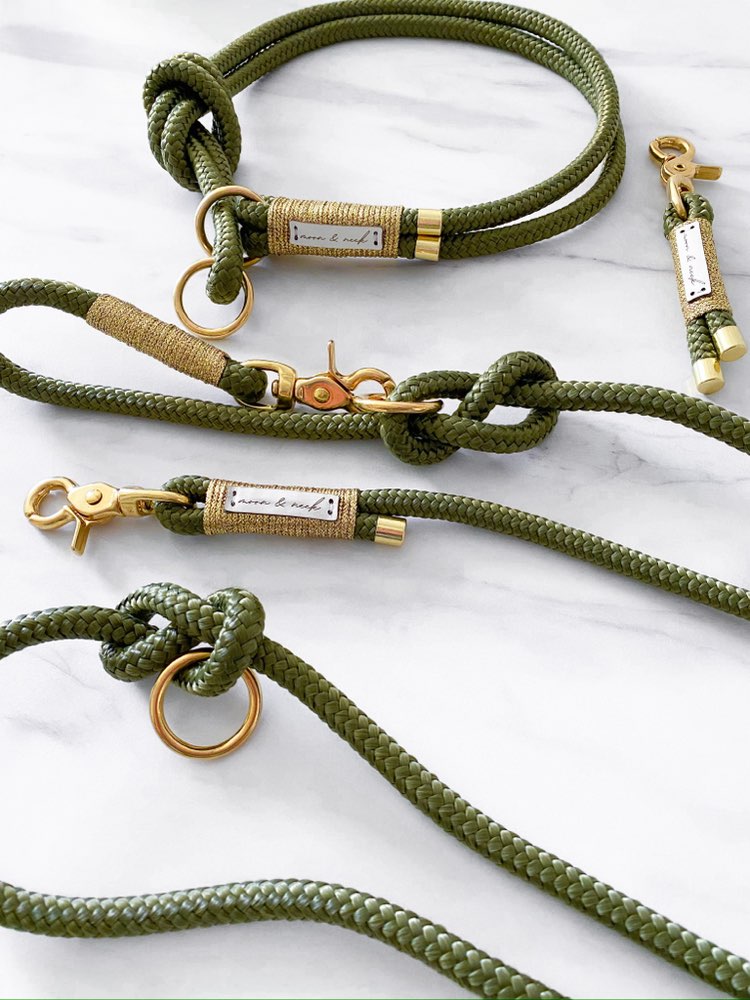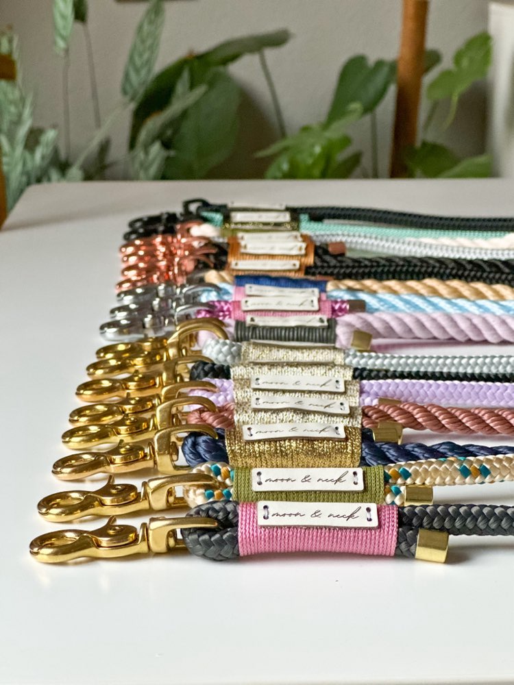 In liebevoller Handarbeit fertigen wir hochwertige, stilvolle und gern auch individuelle Halsbänder, Leinen und passende Accessoires für deinen Liebling und dich an.