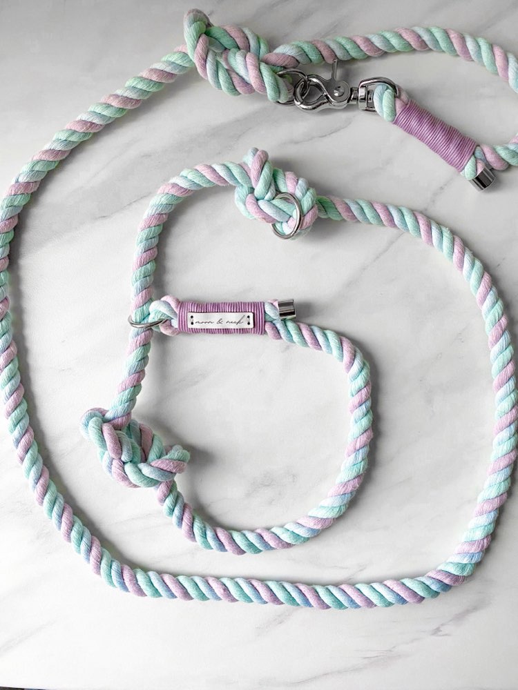 Unsere Retrieverleinen, auch Schlupfleinen genannt, werden in unserer Manufaktur handgefertigt. Sie vereinen Halsband und Führleine und lassen sich je nach den Maßen deiner Fellnase bequem verstellen. Dazu verschiebst du die beiden vorgefertigten Knoten passend auf den Halsumfang deines Hundes. Durch den Zugstopp wird verhindert, dass dein Hund gewürgt wird, sobald Zug auf die Leine kommt. Bitte stell diesen daher vor dem erstmaligen Gebrauch auf die Größe deines Hundes ein. Du kannst dir die Länge und Verstellbarkeit der Leine aussuchen. Solltest du eine andere Farbe der Beschläge oder Umwickelung wünschen, kannst du das gern am Ende der Bestellung in das Kommentarfeld eingeben oder dir dein eigenes Design bei Create your own anlegen. Seil Stärke 8 mm (für kleine Hunderassen wie z.B. Chihuahua, Zwergspitz, Pinscher, Dackel) Seil Stärke 10 mm (für mittelgroße/große Hunderassen)