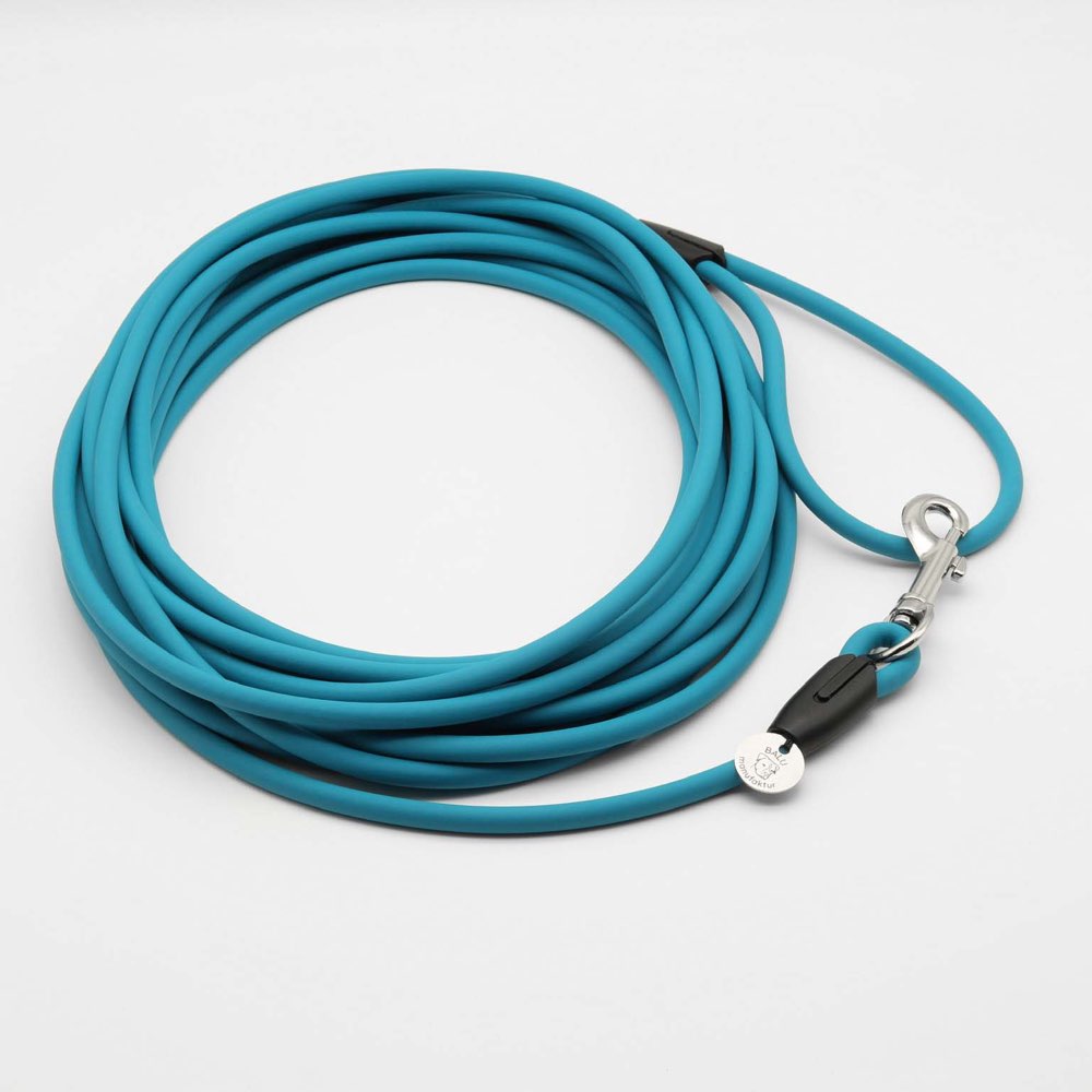 Um Dir dauerhaftes Vergnügen mit unserer Schleppleine rund BioThane® zu sichern, sind bei der Herstellung nur hochwertige Materialien zum Einsatz gekommen. Wir benutzen ein stabiles BioThane® Band, welches leicht und witterungsbeständig ist. Außerdem verschmutzt es nicht schnell, ist wasserfest und somit leicht zu reinigen.