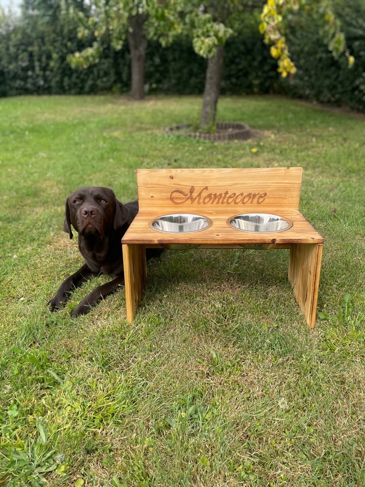 Personalisierte Futterbar aus Holz – stilvoll, praktisch & einzigartig Unsere hochwertige Futterbar aus Holz ist nicht nur ein echter Hingucker, sondern auch besonders funktional. Die erhöhte Futterstation unterstützt eine gesunde Haltung deines Lieblings beim Fressen und Trinken. Gefertigt aus massivem Holz und mit dem Namen deines Haustiers personalisierbar – ein Must-have für stilbewusste Tierliebhaber!