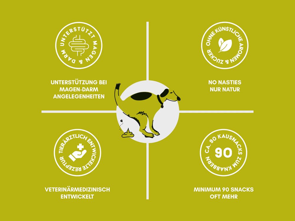 Magen-Darm-Problematiken sind nicht ausschließlich menschliche Angelegenheiten, sondern betreffen auch unsere tierischen Gefährten. Symptome wie Übelkeit, Erbrechen, Bauchkrämpfe und gelegentlicher Durchfall können auftreten. Unser Snack mit einer speziell formulierten Magen-Darm-Formel ist darauf ausgerichtet, die Darmflora des Hundes zu unterstützen. Durch gezielte Inhaltsstoffe kann er dabei helfen, die Nährstoffverwertung zu verbessern und das Wachstum gesunder Darmbakterien zu fördern. 🐶💩🌱