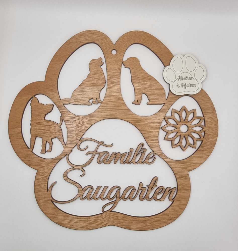 Loop Türschild Türkranz Tier Pfote Holz von Atelier 4 Pfoten