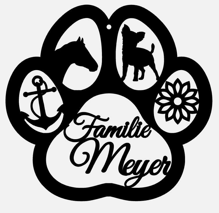 Du kannst frei entscheiden ob ein Ballen leer bleibt, eine Silhouette nach deinen Wünschen wie Blume, Schneeflocke usw. ( Für Ideen schaue gerne bei unseren Pfotenanhängern vorbei. ) oder einer Silhouette deiner Fellnase, dafür musst du mir nach dem Kauf nur ein Bild oder Bilder zukommen lassen, je besser das Bild desto besser das Ergebnis. Für die zusätzliche Arbeit wird jeweils ein Aufschlag erhoben.