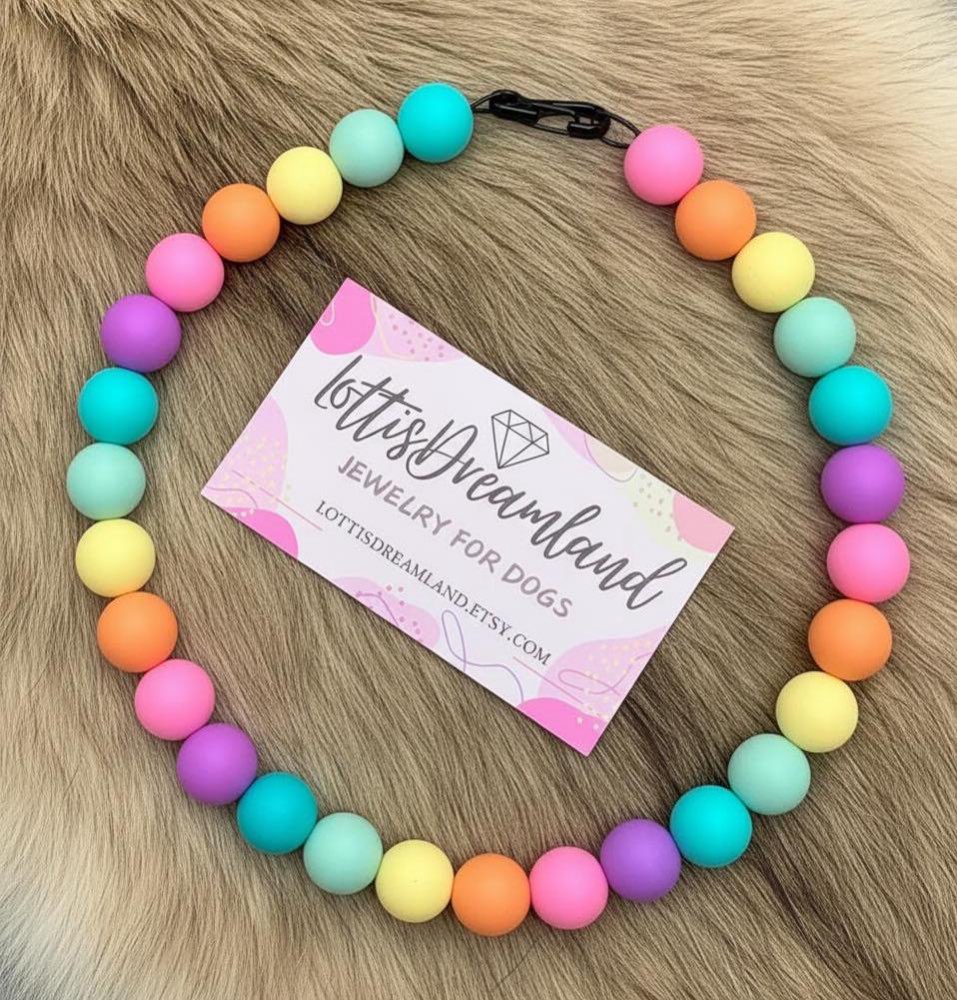 Bei LottisDreamland gibt es handgemachte Hundeperlenketten in vielen verschiedenen Größen, Designs und Farben 🥰
