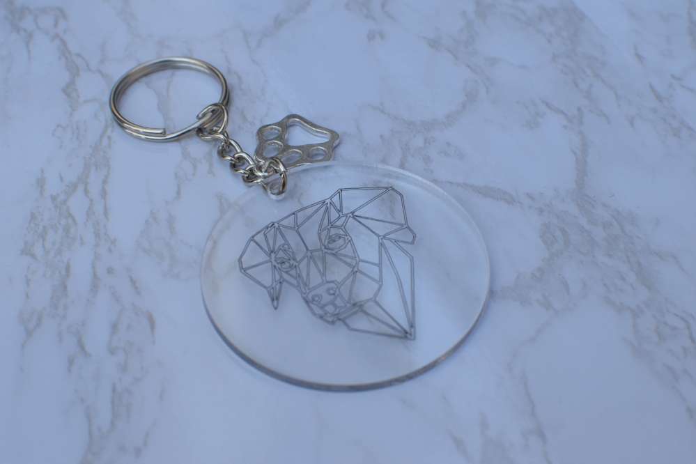 Neben vielen verschiedenen Hundehalstüchern biete ich auch an, deinen Vierbeiner individuell im geometrischen Stil zu zeichnen und eine tolle Erinnerung zu erschaffen. Dabei hast du die Wahl zwischen einem gravierten Schlüsselanhänger, einem hochwertig gedruckten Bild im schlichten Rahmen, einem von Hand bedruckten Shirt oder einer handgemachter Tasche.