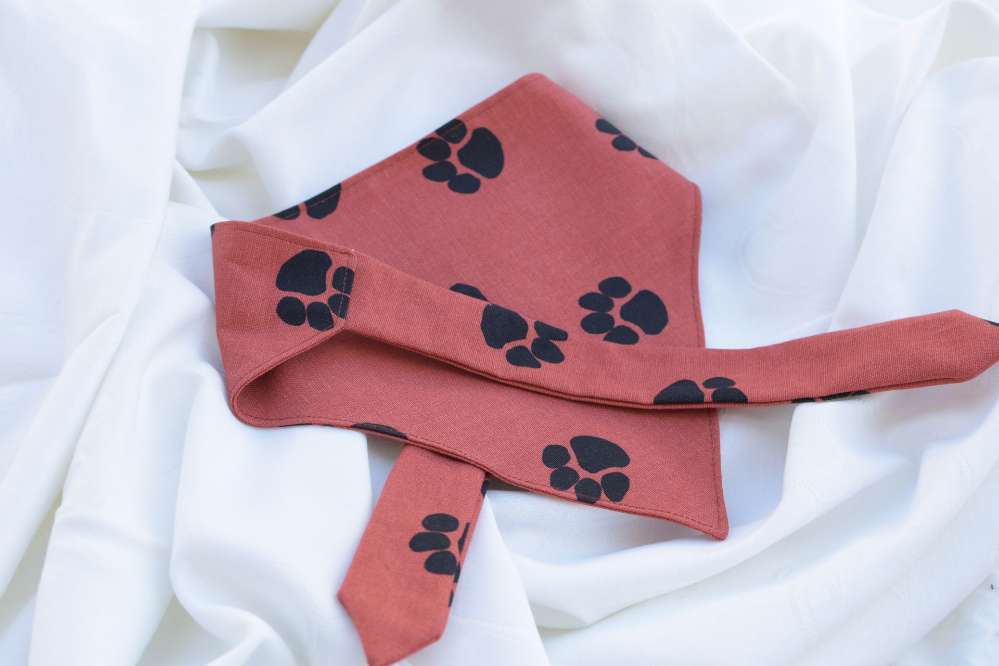 Hundehalstuch Pfoten terracotta von Handmade by Moana