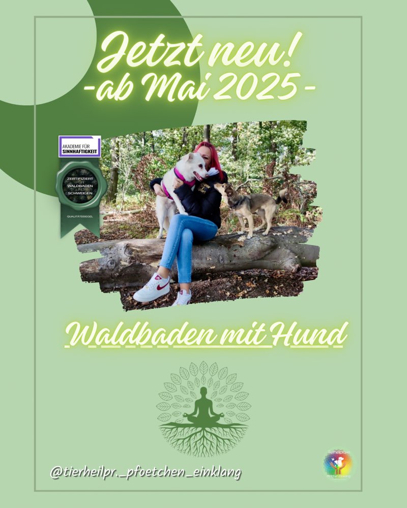 Erleben Sie mit Ihrem Hund die beruhigende Wirkung des Waldes. Mein geführter "Waldbaden mit Hund"-Kurs bietet Ihnen und Ihrem Vierbeiner die Möglichkeit, Stress abzubauen, die Bindung zu stärken und die Natur mit allen Sinnen zu genießen.