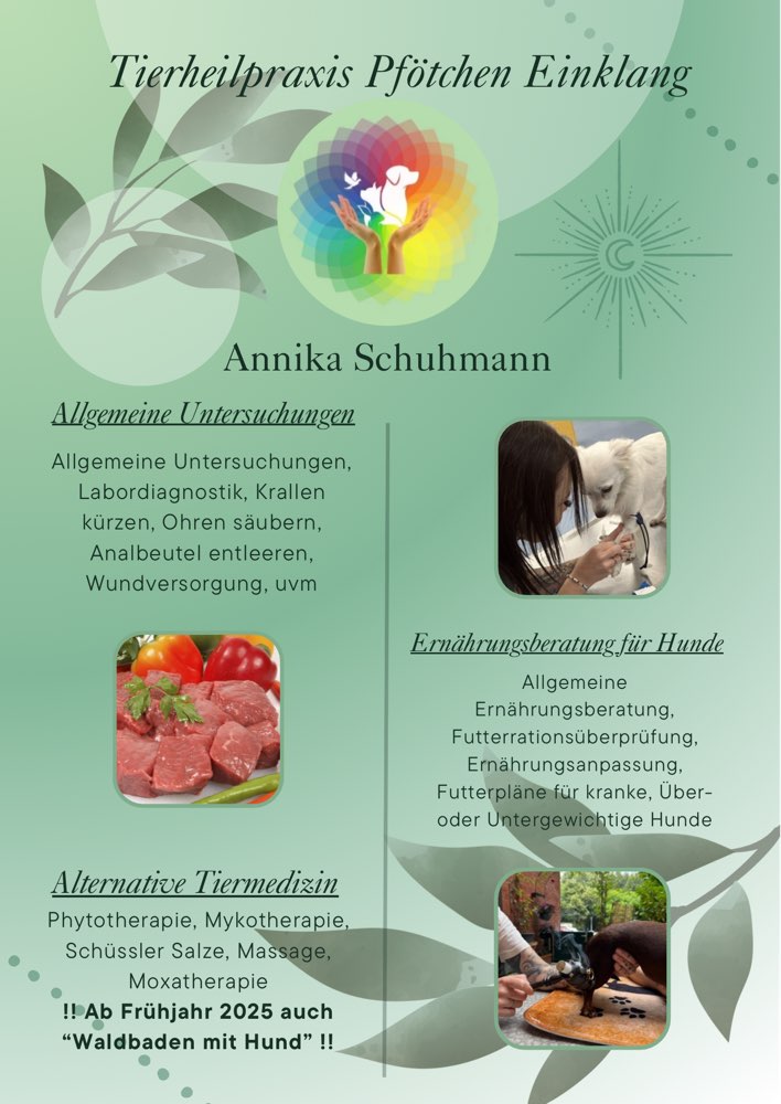 Geben Sie Ihrem Tier die Gesundheit und das Wohlbefinden, das es verdient. Ich freue mich darauf, Sie und Ihren tierischen Freund kennenzulernen.