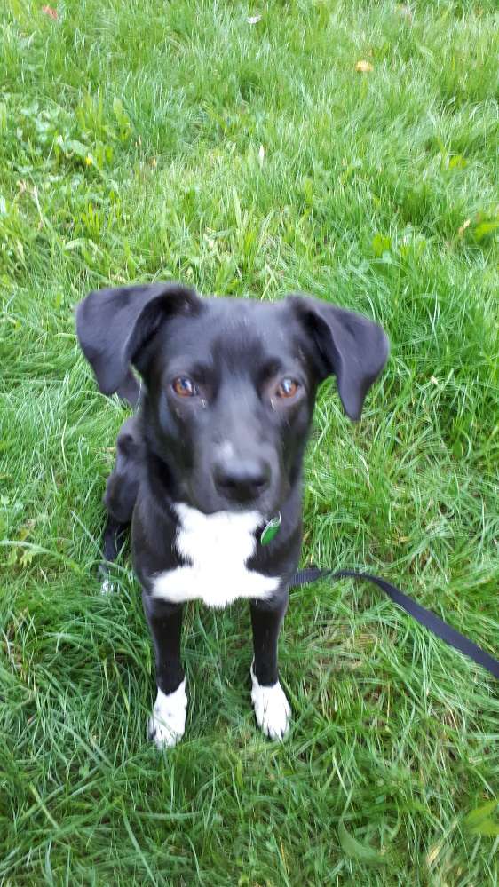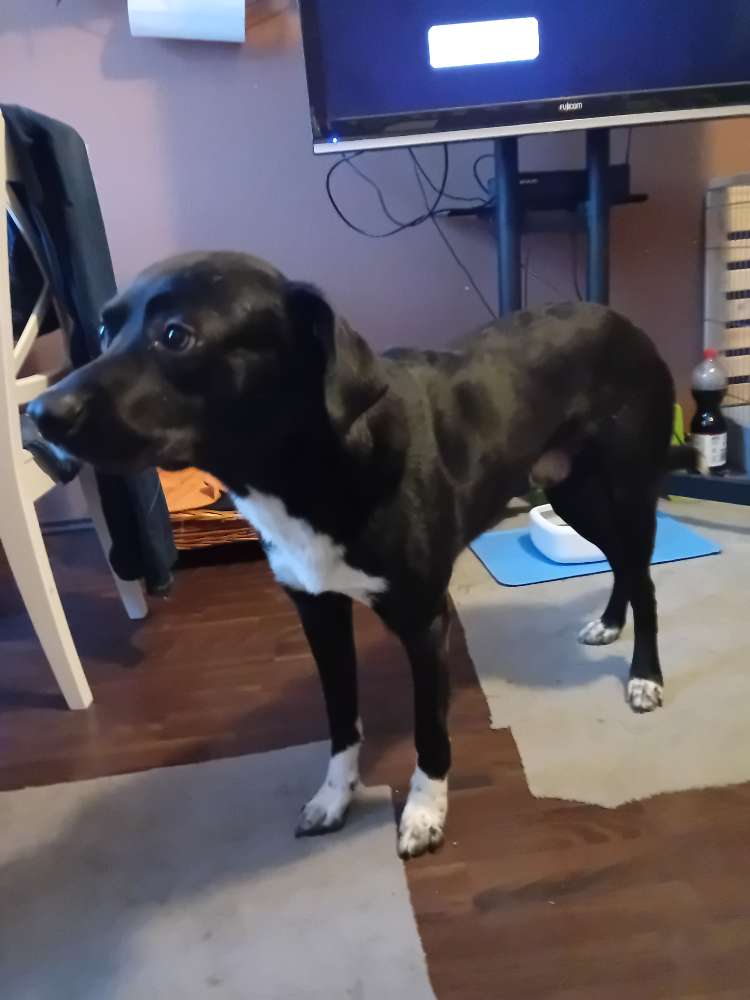 - hat eine weiße Schweifspitze, ist freundlich, immer hungrig, aber auch ängstlich