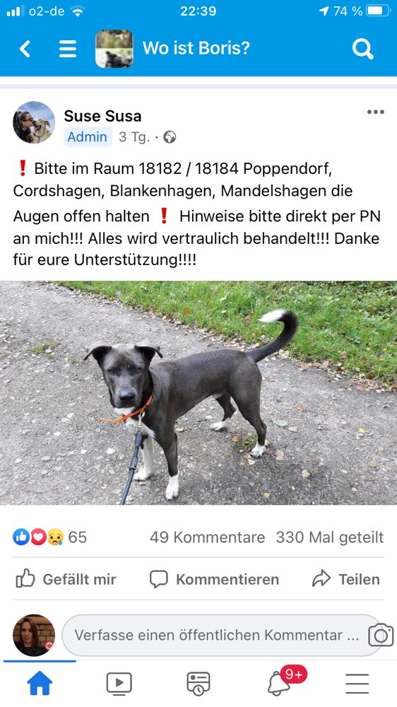 Hund Boris wird in Sanitz vermisst!