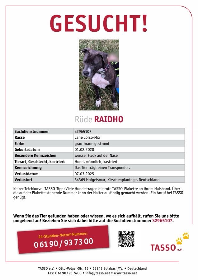 Hund Raidho wird in Homberg vermisst!