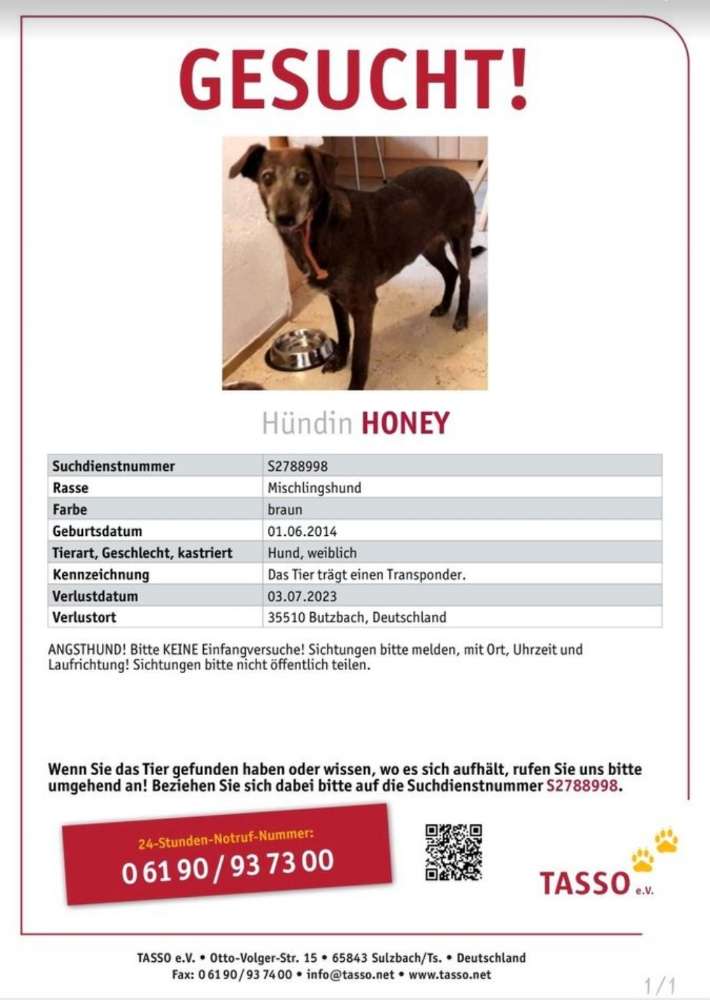 🚨 ACHTUNG 🚨 Angsthündin HONEY entlaufen am 3.7.2023 in 35510 Butzbach