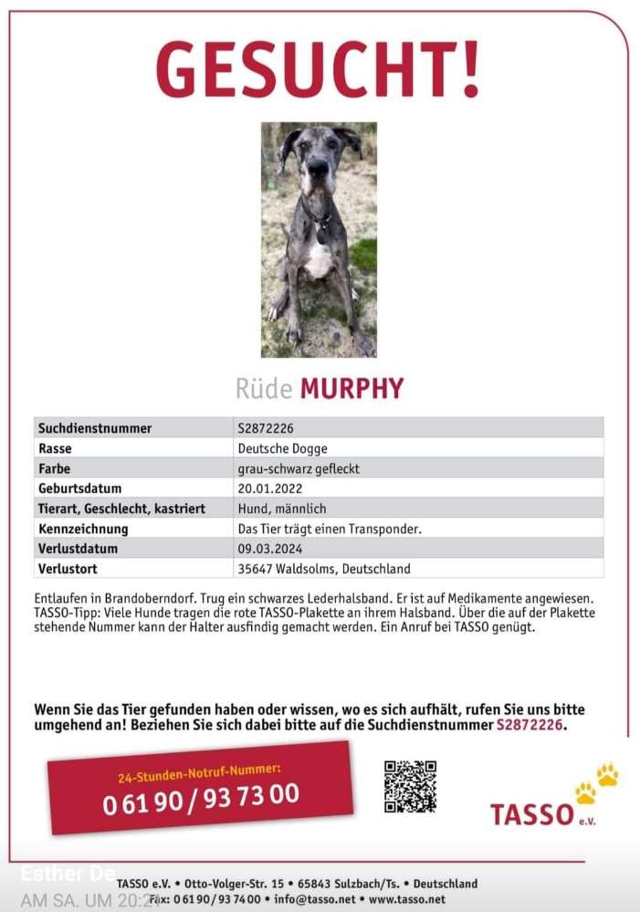 ❌️Seit 09.03.24 wird Deutsche Dogge Rüde MURPHY in 35647 Waldsolms vermisst❗️