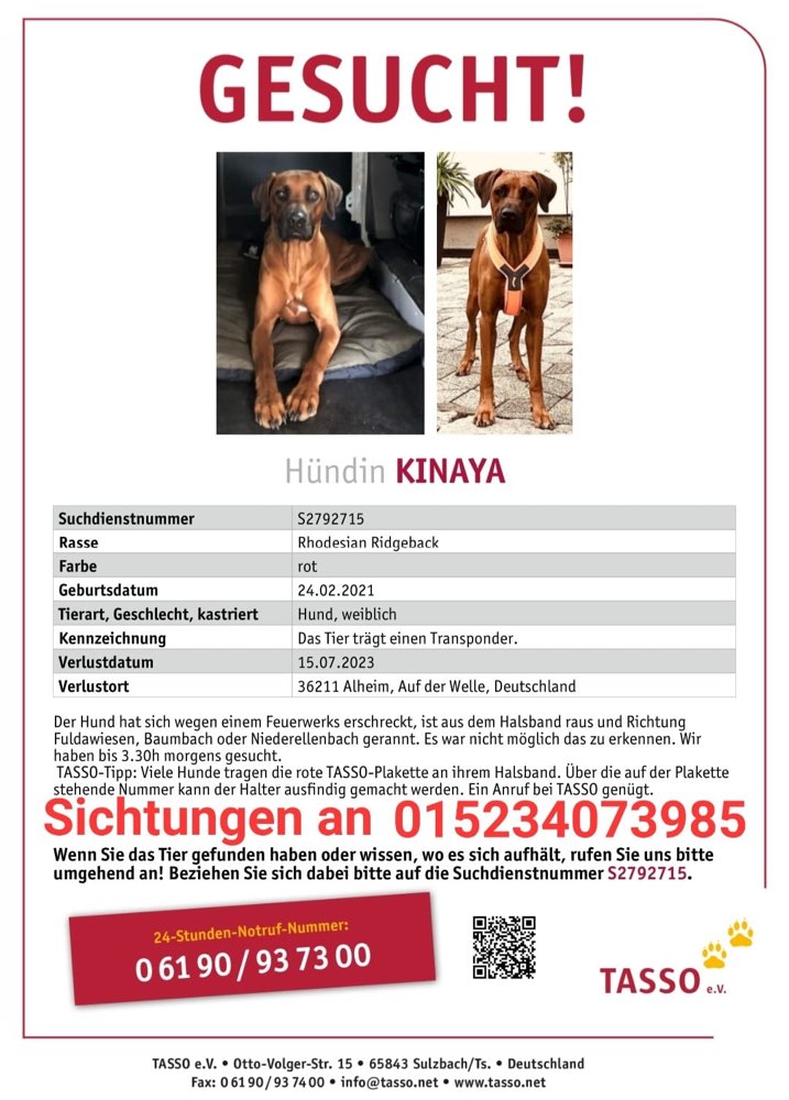 Kaia wird weiterhin vermisst. Bitte melden Sie jede Sichtung, unterlassen Sie Fangversuche, machen Sie stattdessen ein Foto!!!!
