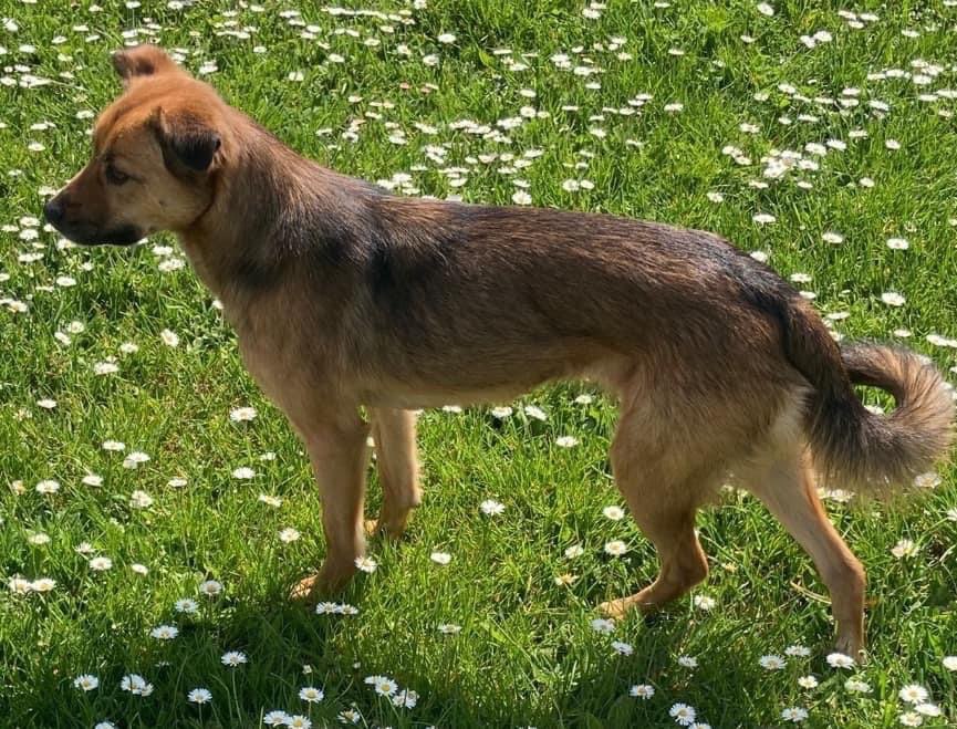 Sie ist eine mittelgroße Hündin
