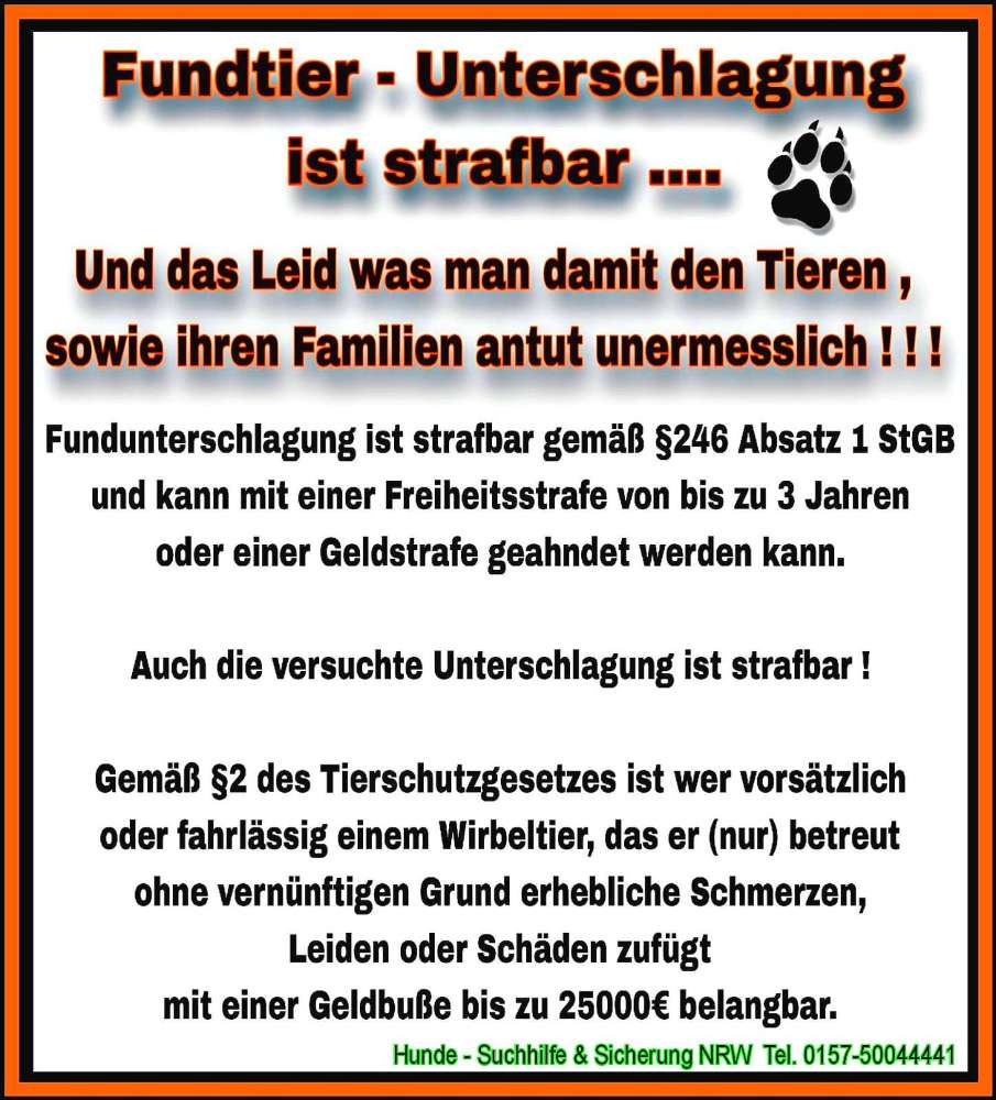 🔺️ Leider kann momentan auch eine Fundtier-Unterschlagung nicht ausgeschlossen werden❗️
