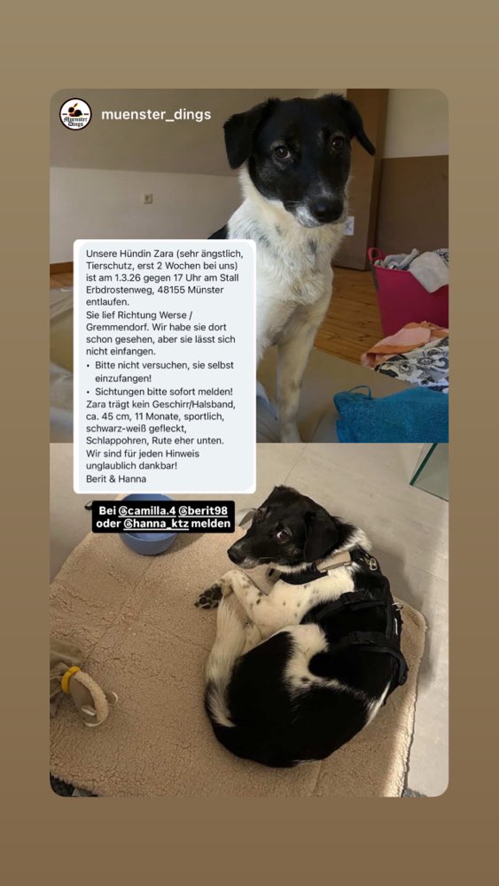 Hund Zara wird in Münster vermisst!