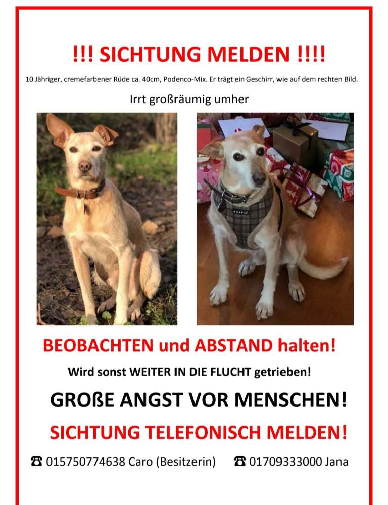 Der Hund ist in Richtung Kürten/Overath gesichtet worden. Bitte keine einfang Versuche, da er direkt weg läuft.