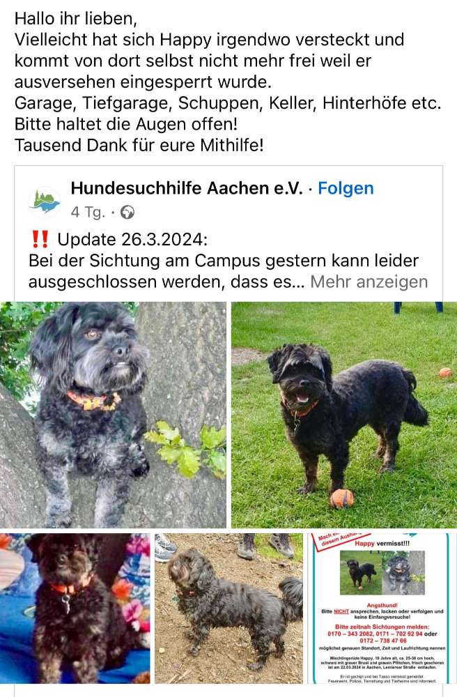 Hund Happy wird in Aachen vermisst!
