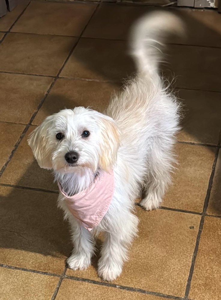 Terrier-Mix-Hündin Luna ist am 06.01.2026 gegen 23:00 Uhr entlaufen. Luna ist kastriert und trägt evtl. noch ihren hellgrünen Mantel, Sicherheitsgeschirr mit Flexi-Leine!