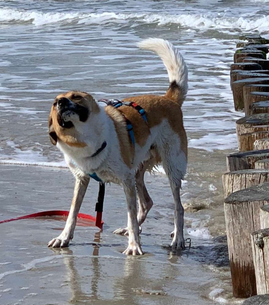 Mikel ist mir grad beim spazieren gehen entwischt 🤦♂️. Er hat ein graues Geschirr an und 20m Schleppleine. Höhe Pferdekoppel Nieland hinter dem Hügel Richtung Sumpfgebiet.