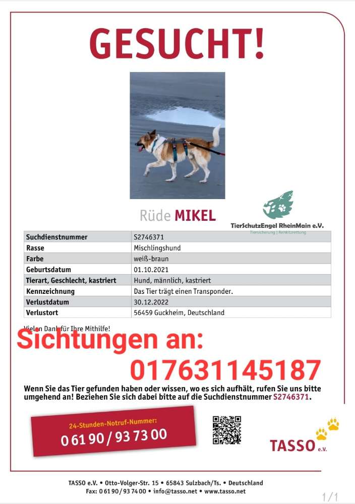 Hund Mikel wird in Guckheim vermisst!